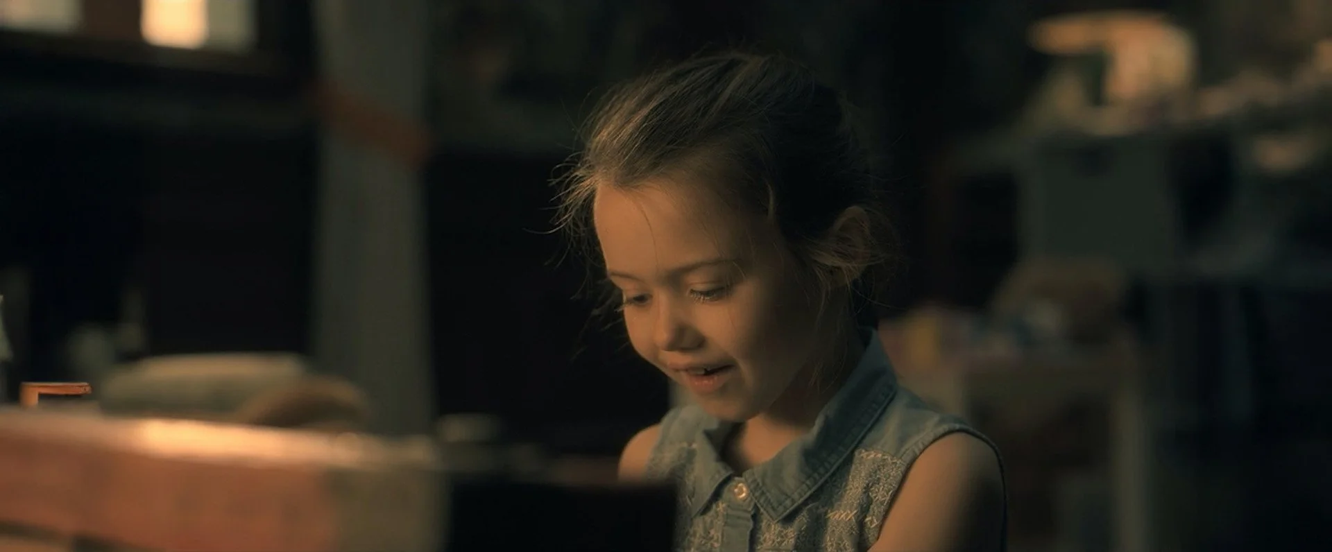 Maya’s world is captured with a warm, comforting glow, a visual sanctuary that feels safe yet tantalizingly out of reach, reflecting Holden’s desperate grasp on fleeting memories. The cinematography employs long lenses to create a soft, intimate depth, pulling her into a hazy focus against blurred backgrounds. Each frame is soaked with a tender nostalgia. Locked off shots anchor these scenes, their stillness mirroring Holden’s attempt to freeze time, the steady camera a silent witness to the joy he clings to, making every glance at her a stark reminder of what’s lost.